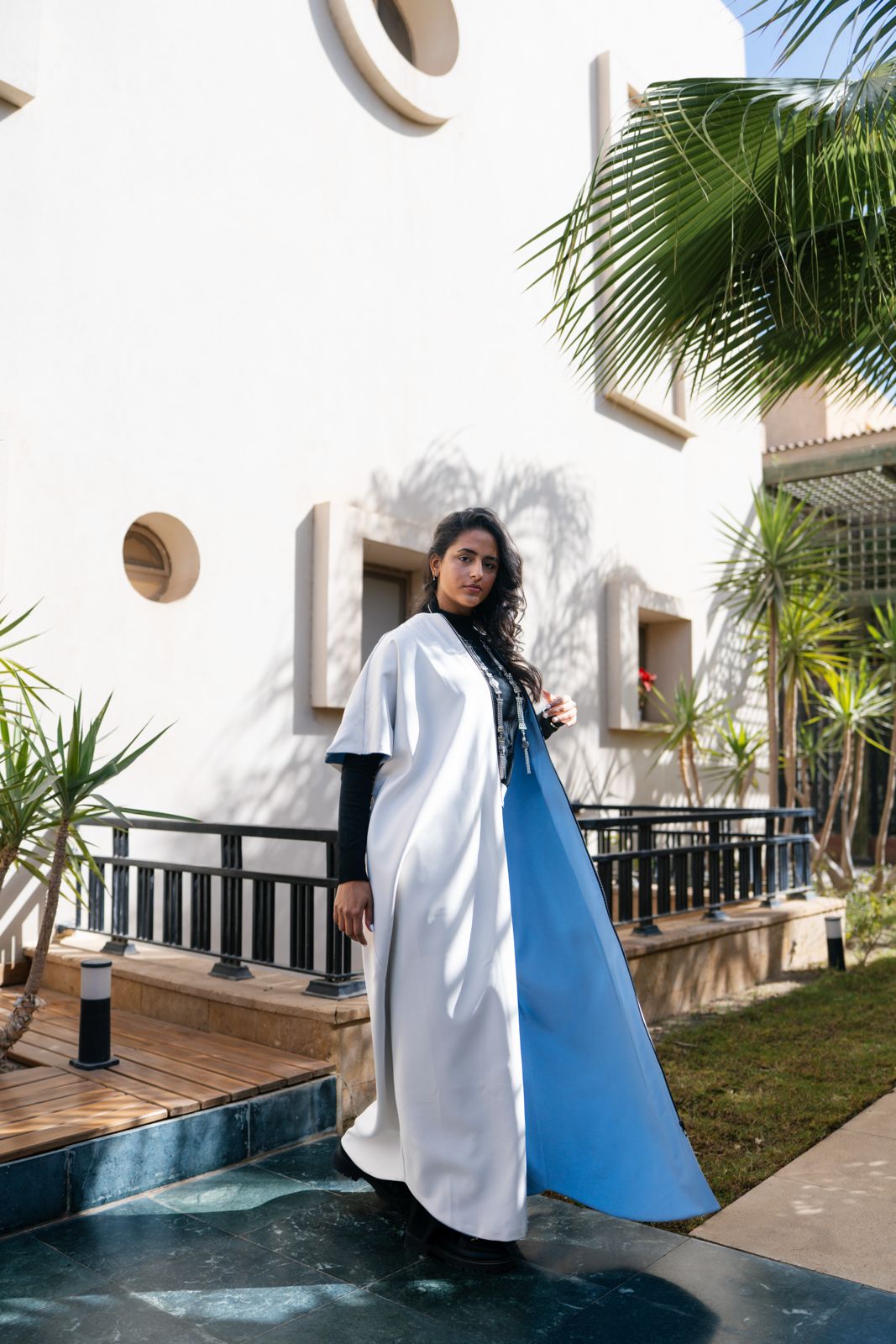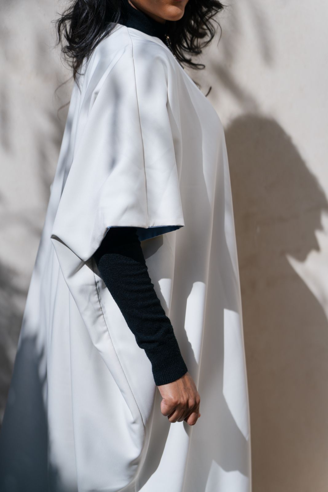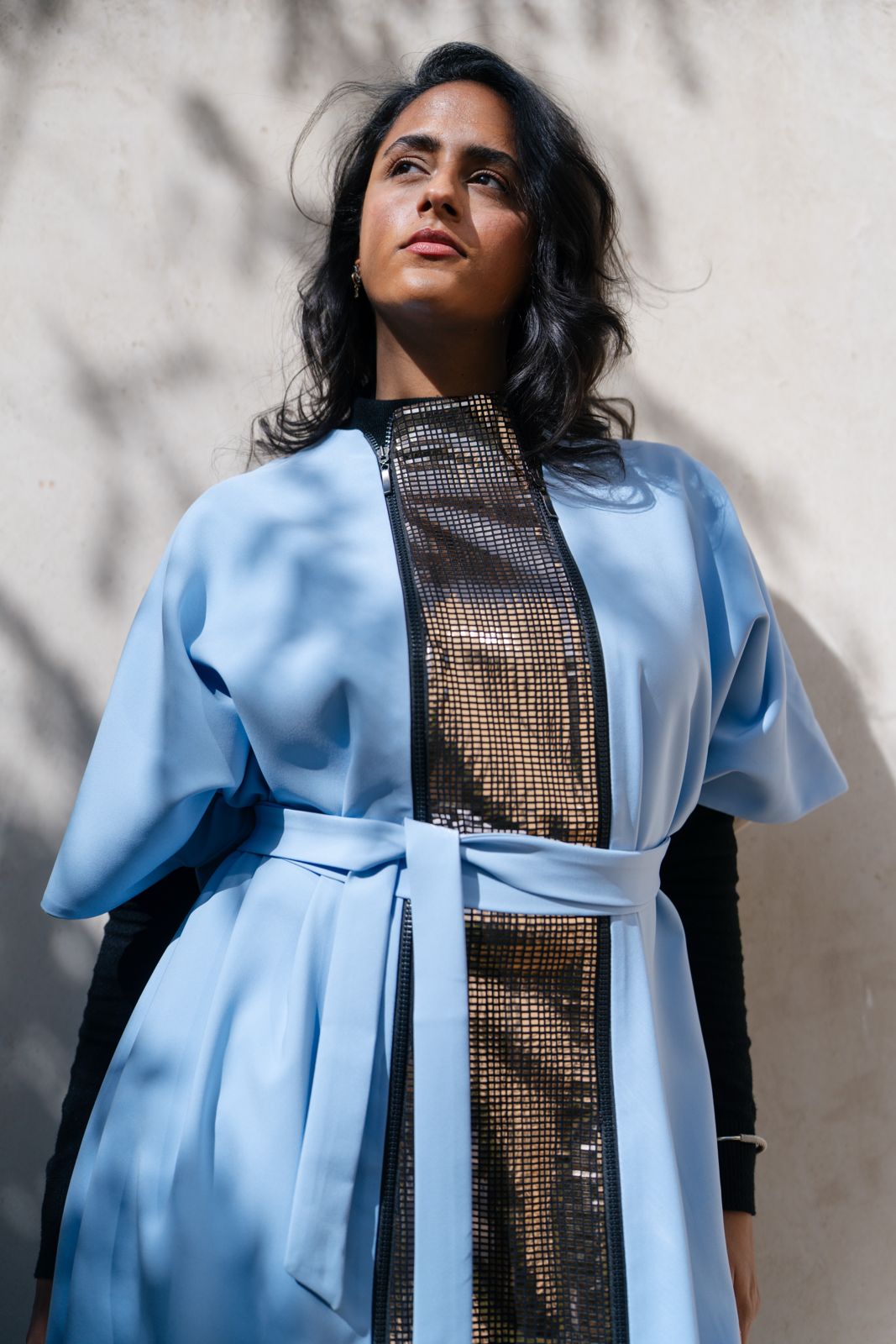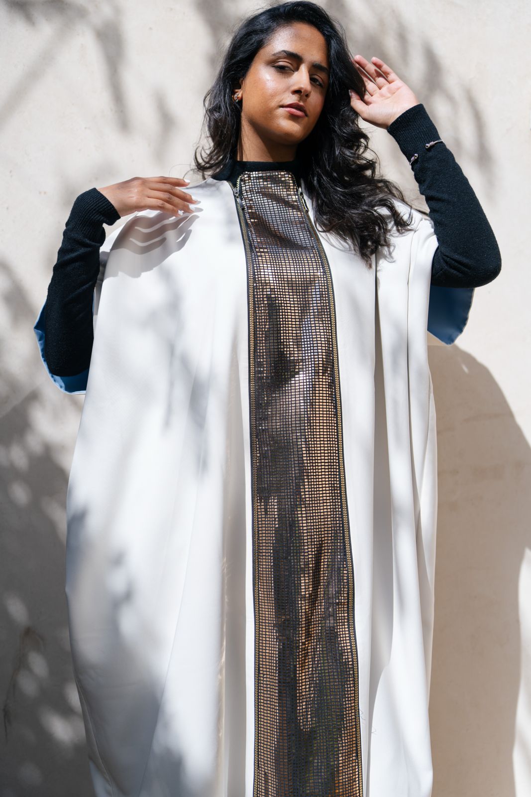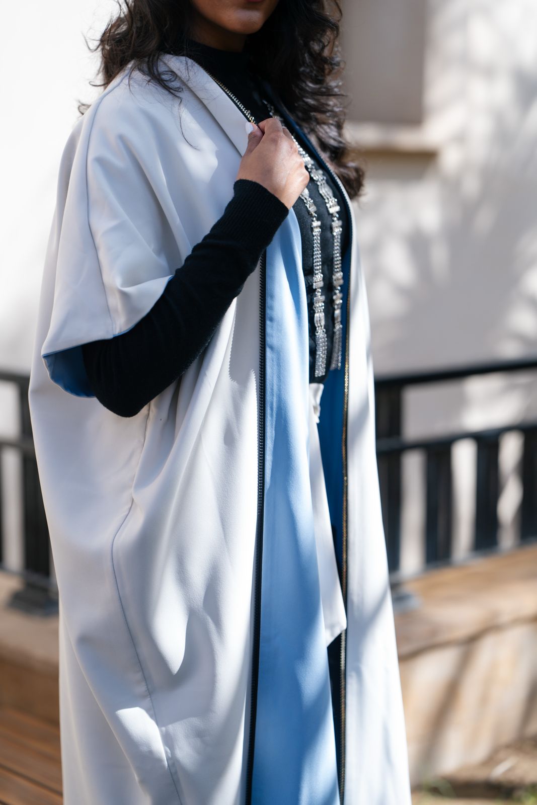 Double-face kaftan designed to be worn open or closed, offering versatile styling with two distinct looks in...